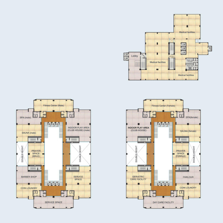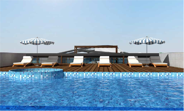 Rooftop facilities (more than 65,000 sq.ft area) is for common usage of residents such as playground, walking trail, swimming pool, sky boulevard, and barbecues. It also has very attractive roof top café and party place for social events for the residents.